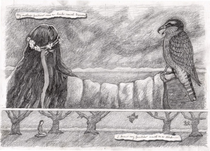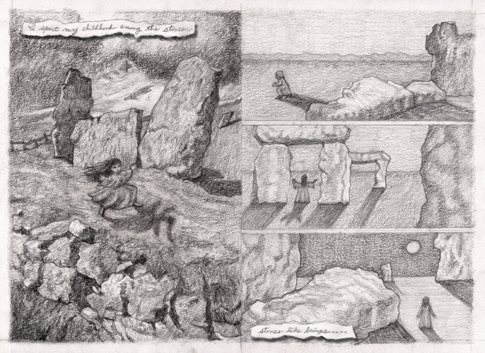 Ceridwen’s Tale is told in a series of thirty intricate graphite drawings and one color oil painting, with very little text. It is available as a limited edition.