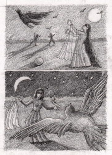 In this book, Ceridwen tells the story of her childhood and young adulthood, her studies with Belanos, her mockingbird familiar, and her life as a bird priestess of her tribe. When Belanos sees fires over Europe on one of his flights, the tribe realizes they must scatter and flee.