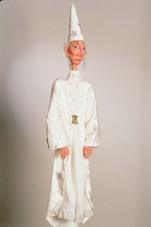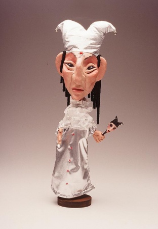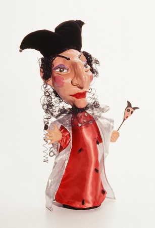 The jester, wizard, witch, bride and drummer hand puppets were made as decorative objects.